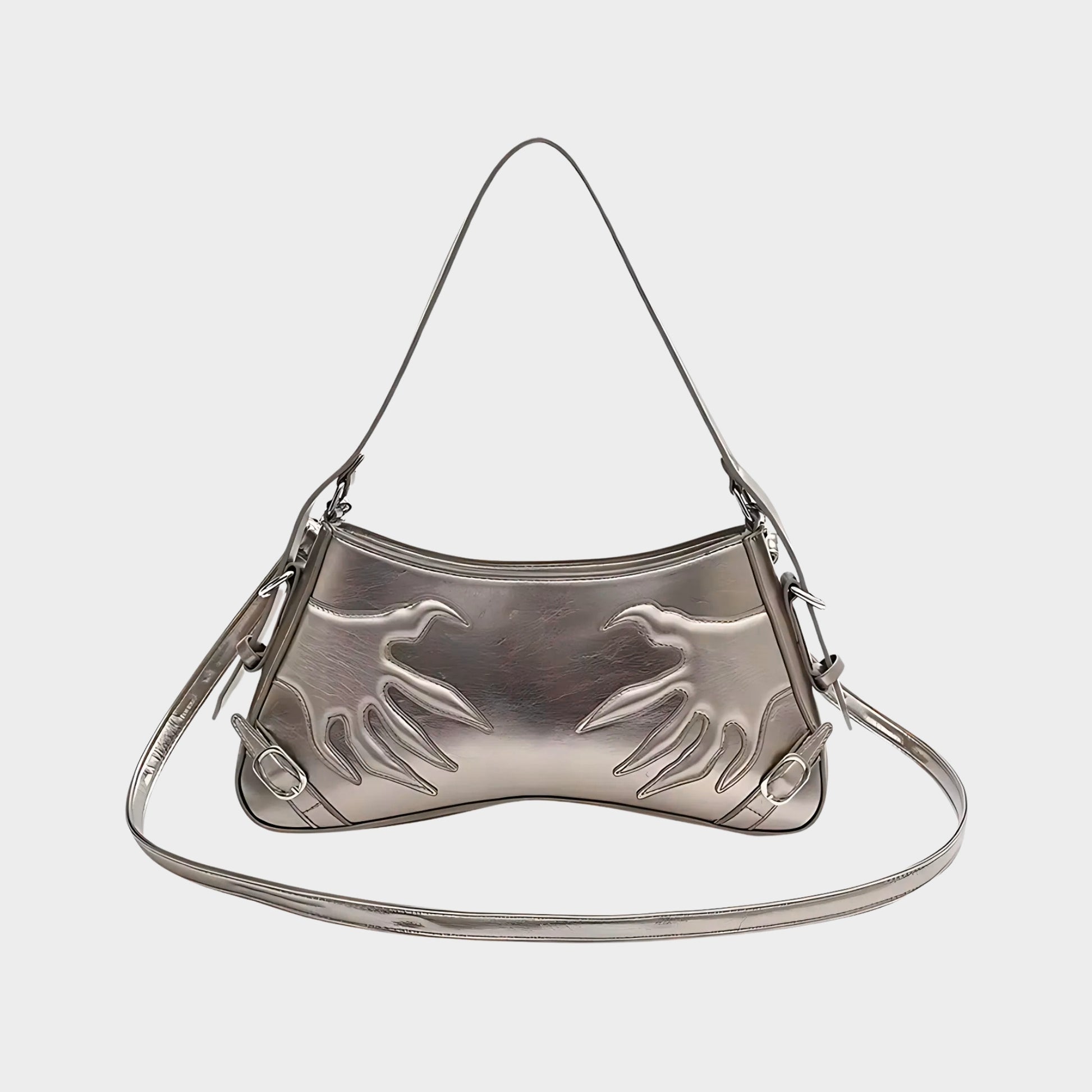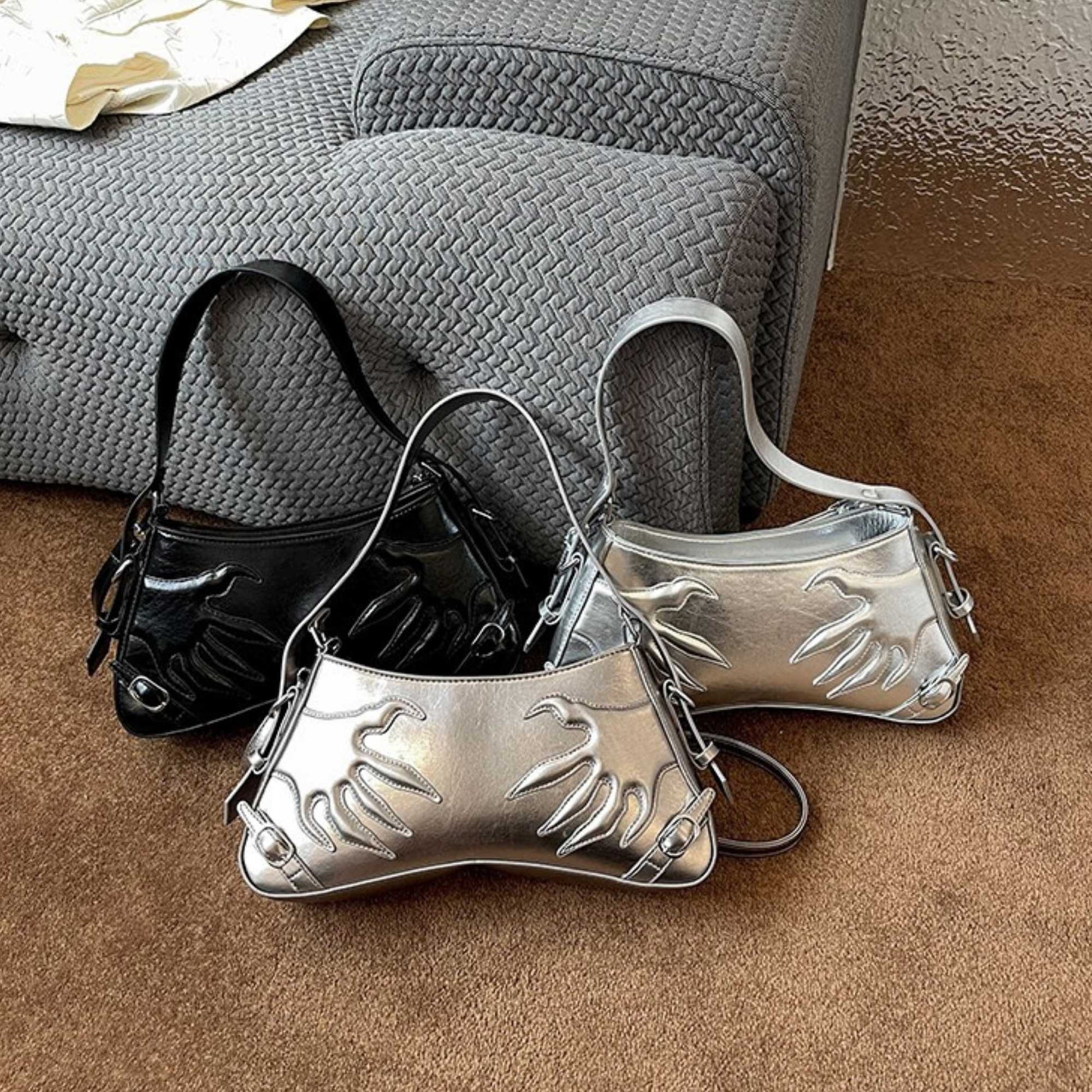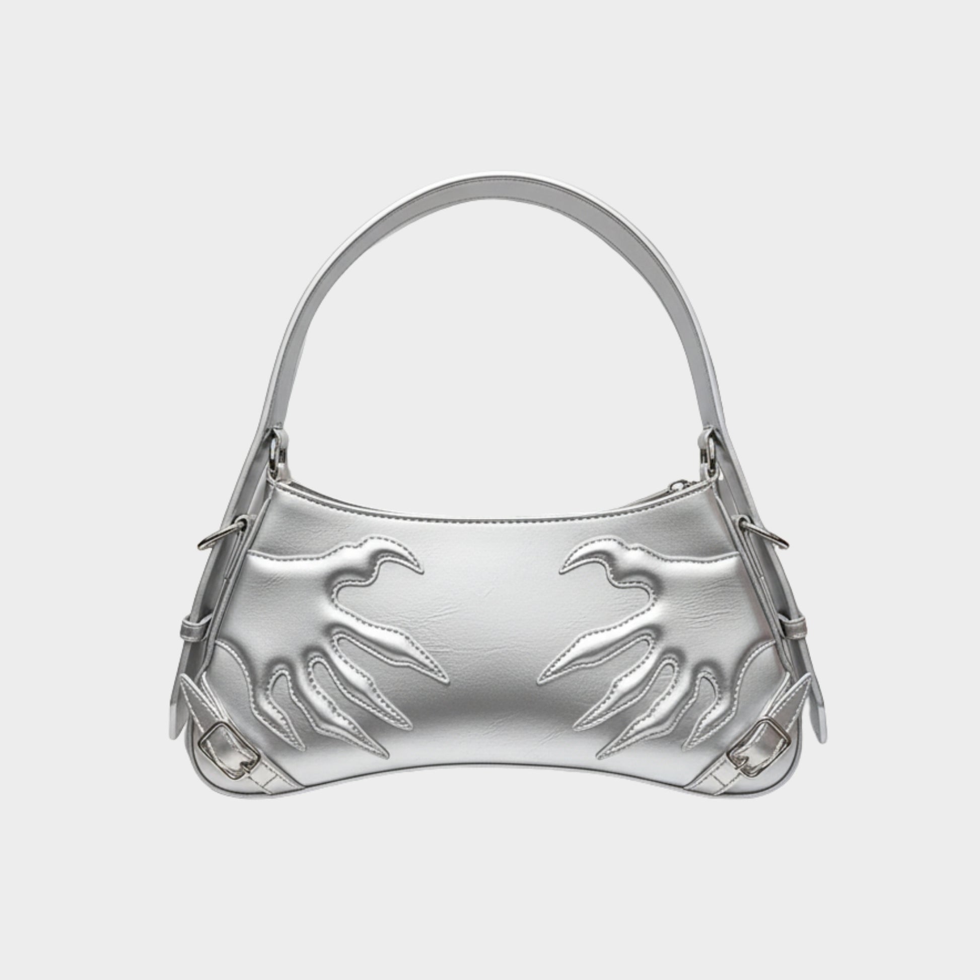 Coded for danger and allure. CLAW_BYTE sharpens a crescent-baguette shoulder with embossed claw panels—CYBERIA’s boldest piece: sexy, dangerous, unforgettable.